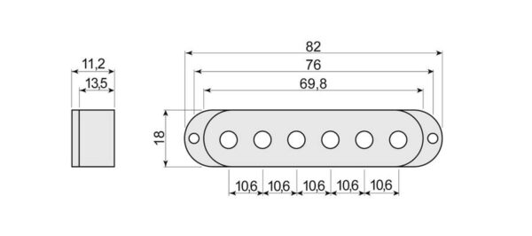 pickup cover single coil, 52mm spacing, 82,0-70,0×18,0mm, 3pcs, ivory