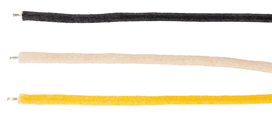 cloth wire, 22 awg, black, white, yellow, 15′