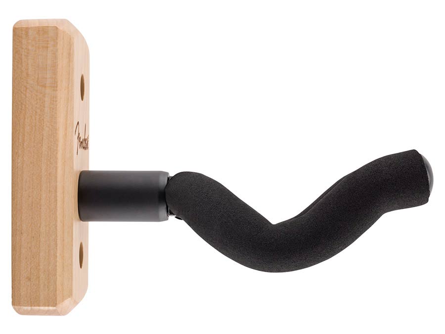 Display your prized guitar in style with the new Fender Essentials Guitar Wall Hanger. Built from durable hardwood with a reinforced steel yoke, it offers a secure hold, while the pivoting EVA foam-padded yoke adjusts to fit most headstock shapes for a straight hang. Complete with a laser-engraved Fender logo and mounting hardware included, the Essentials Wall Hanger keeps your go-to guitar ready to play while adding a subtle touch of Fender flair to your space.