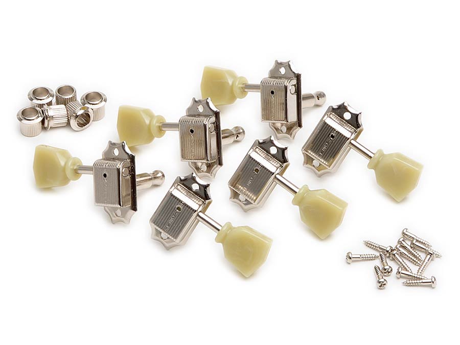 machine heads for guitar “Single Line”, 3x left+3x right with tulip buttons, nickel