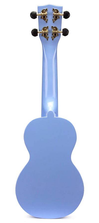 ukelele, met gitaarmechanieken, Aquila snaren, Nubone zadel en hoes, lichtblauw