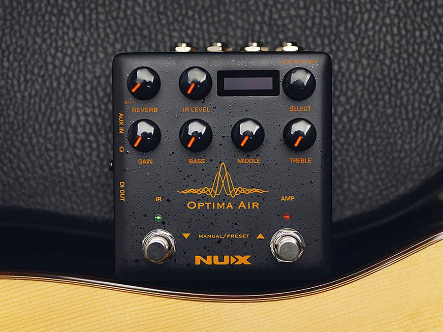 NUX Optima Air is een akoestische gitaarsimulator met twee schakelaars en een voorversterker voor akoestische en elektrische gitaristen. Het simuleert de akoestische gitaarprofielen met het best geoptimaliseerde geluid, afhankelijk van je gitaar en pickup type.