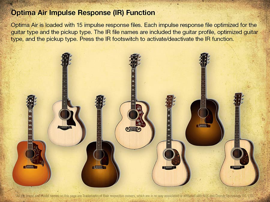 NUX Optima Air heeft een unieke profile capture functie, je kunt je eigen akoestische gitaarprofiel (IR-bestand) maken door het geluid van je favoriete akoestische gitaar vast te leggen.