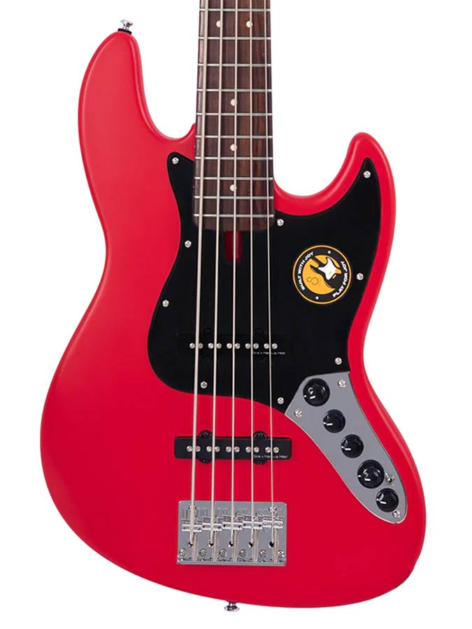 basgitaar, 5-snarig, red satin