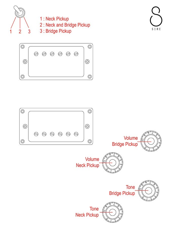 | controls | 2 volume 2 tone (each pickup) 3 way toggle |