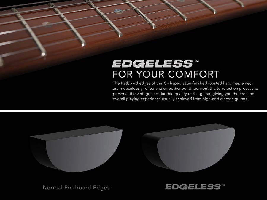 fingerboard material roasted hard maple, edgeless™ (rolled edges)