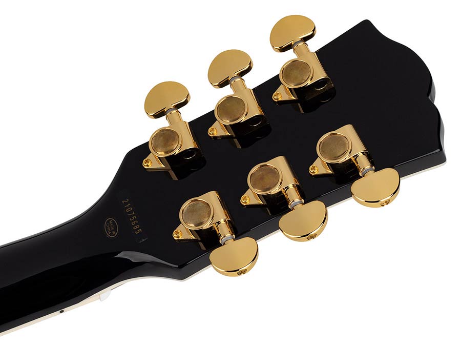 De EH serie heeft de kenmerken van de LP Custom met de blok inleg in de toets, multiply binding, gouden hardware. De mahonie body en hals zorgen voor een warmer geluid met meer diepgang. De hardware is goudkleurig en van betere kwaliteit en de algemene stabiliteit is zo goed dat deze gitaar je een heel lange tijd zal inspireren.